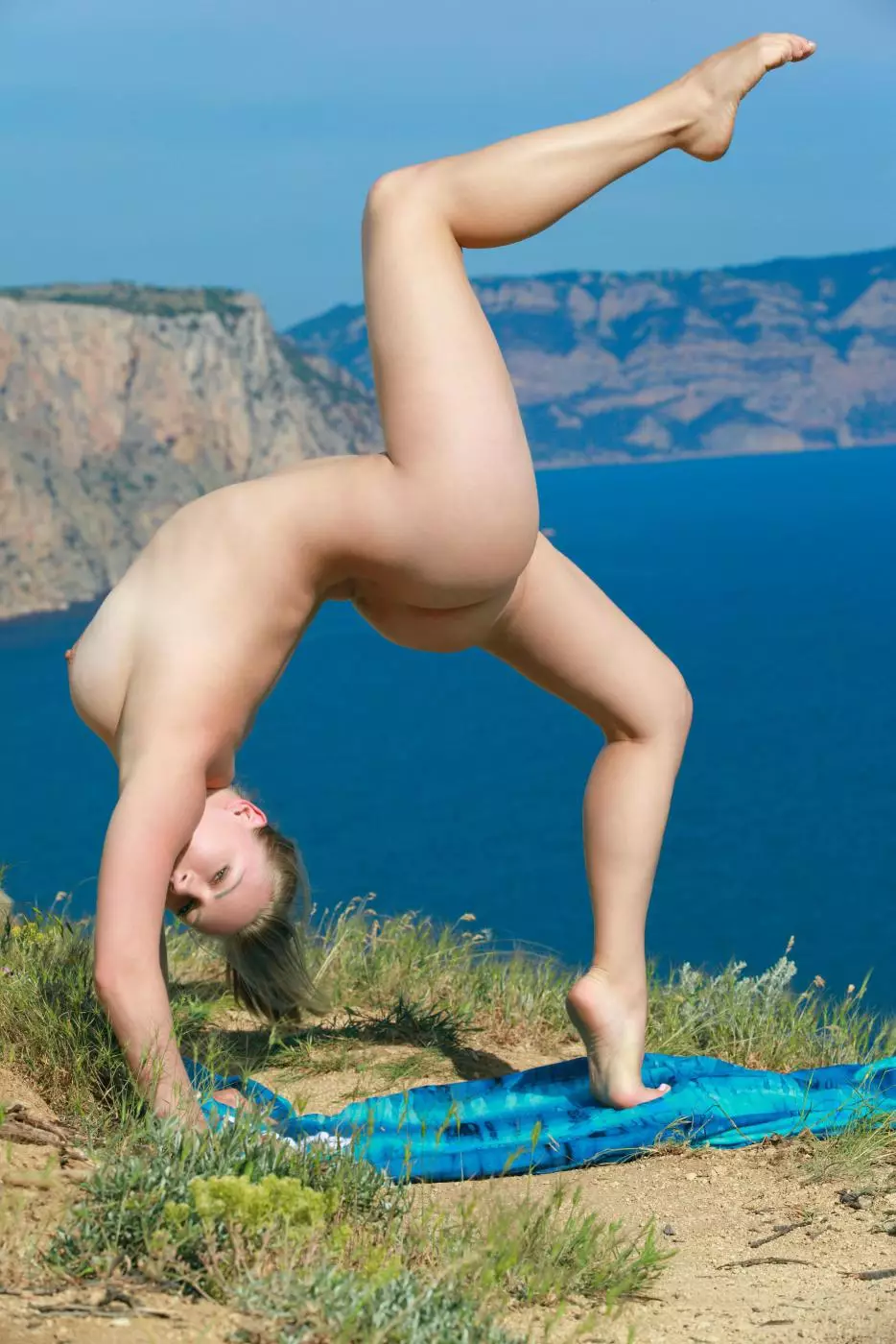 Горячая и гибкая блондинка Alessandra A снимает трусики и соблазнительно позирует обнаженной на природе — Alessandra A