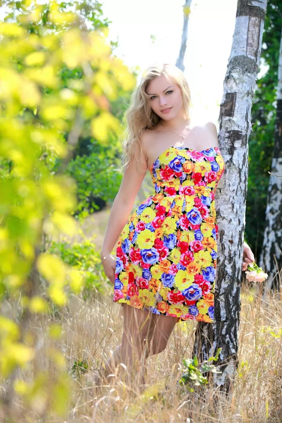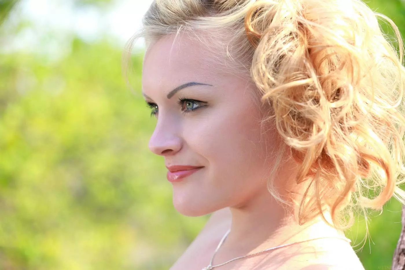 Ангельская блондиночка Alessandra A снимает милое платье и позирует обнаженной на природе — Alessandra A