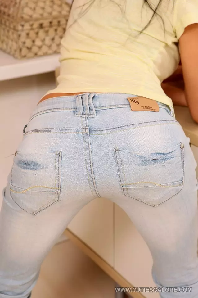 Брюнетка Angellina Sapphic снимает джинсы и втыкает игрушку в попку — Angellina Sapphic