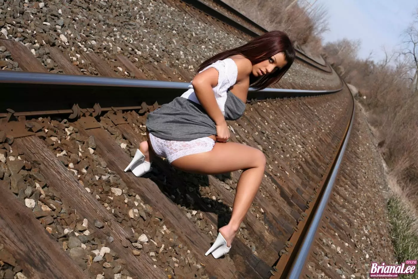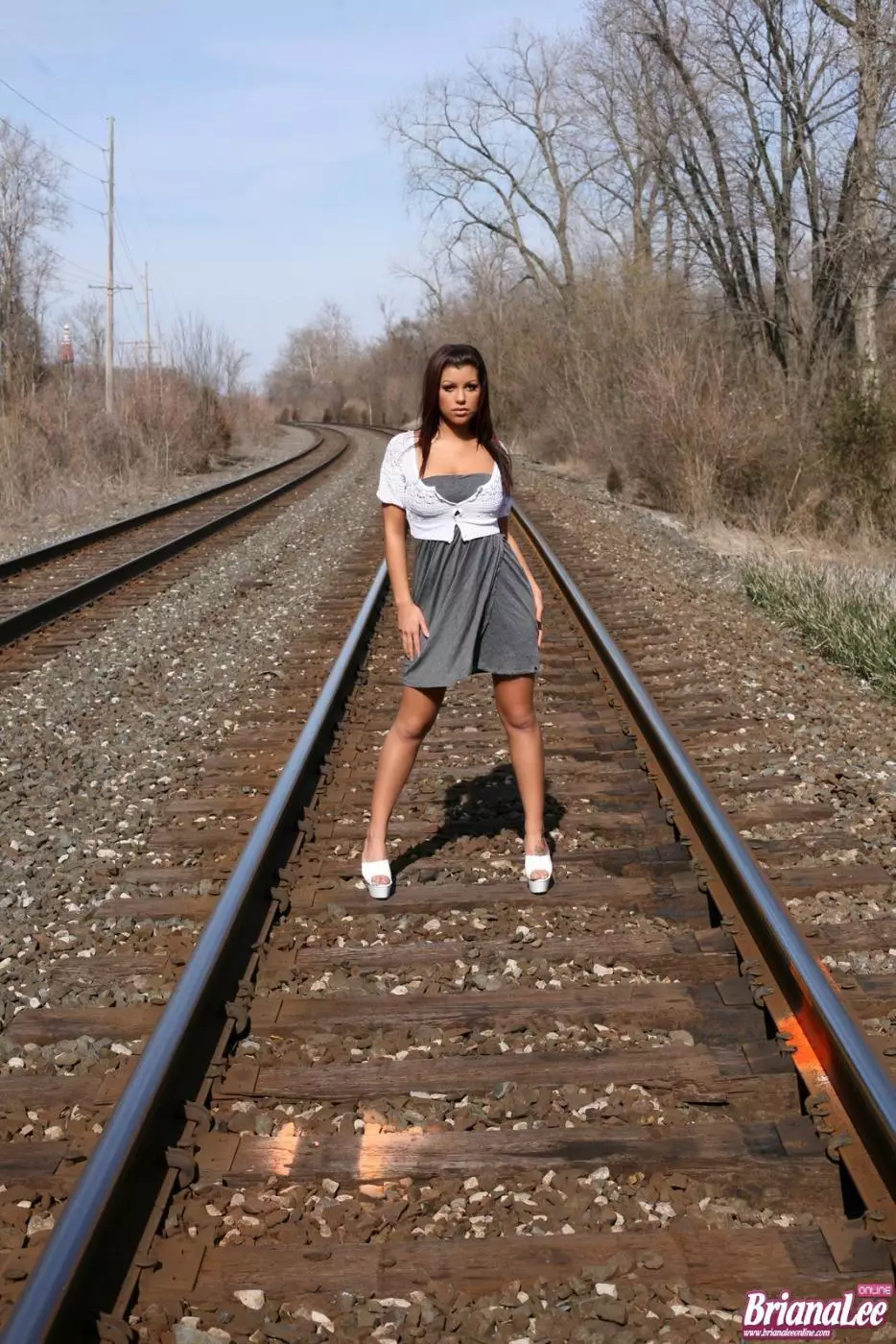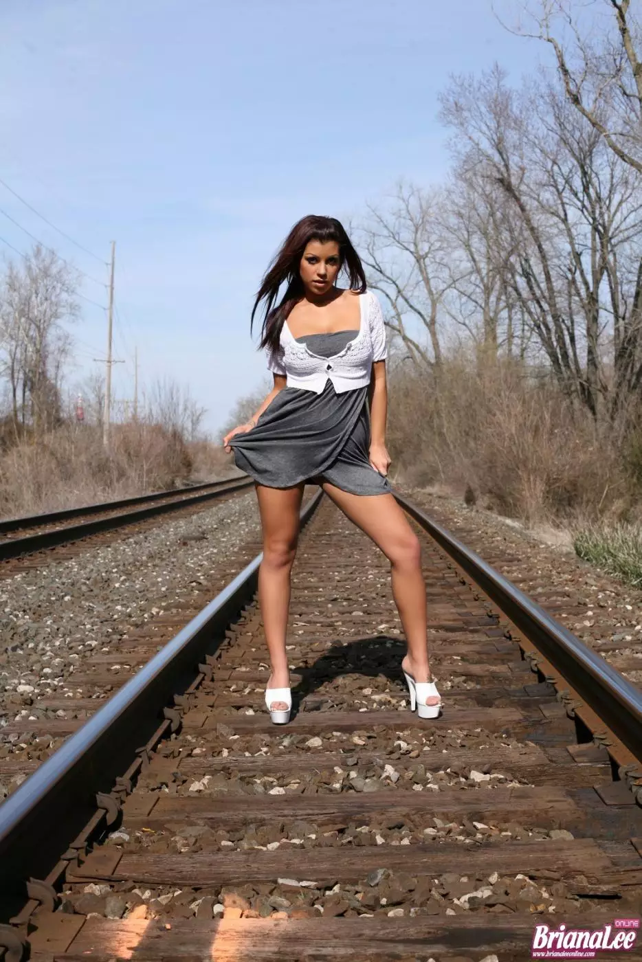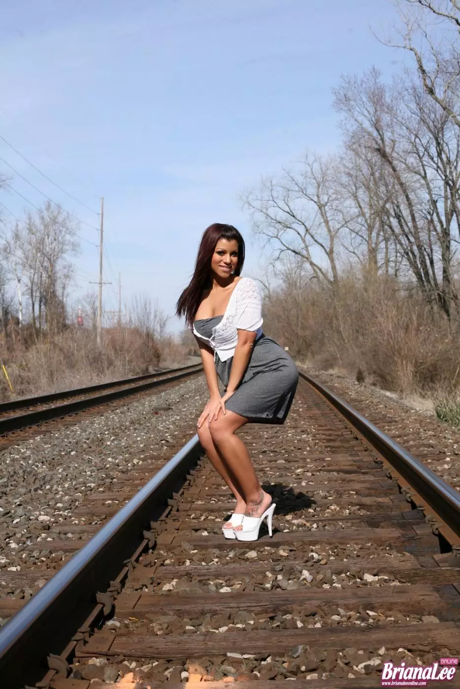 Сладкая латиночка Briana Lee позирует в сексуальном платье на железнодорожных рельсах — Briana Lee