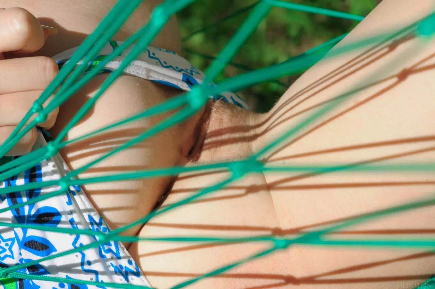 Элегантная и игривая блондинка Bridgit A раздевается на природе и показывает свою бритую киску — Bridgit A