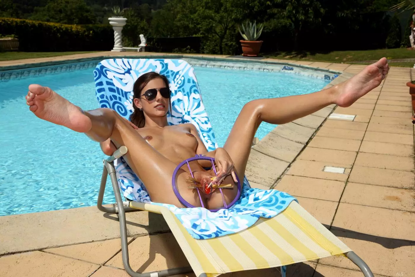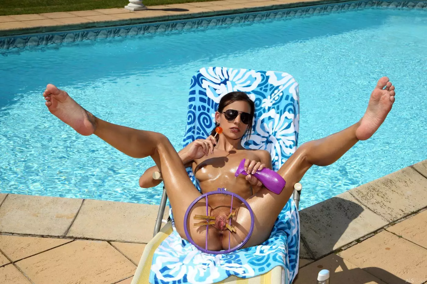 Сексуальная брюнетка Candice Luca снимает бикини у бассейна — Candice Luca