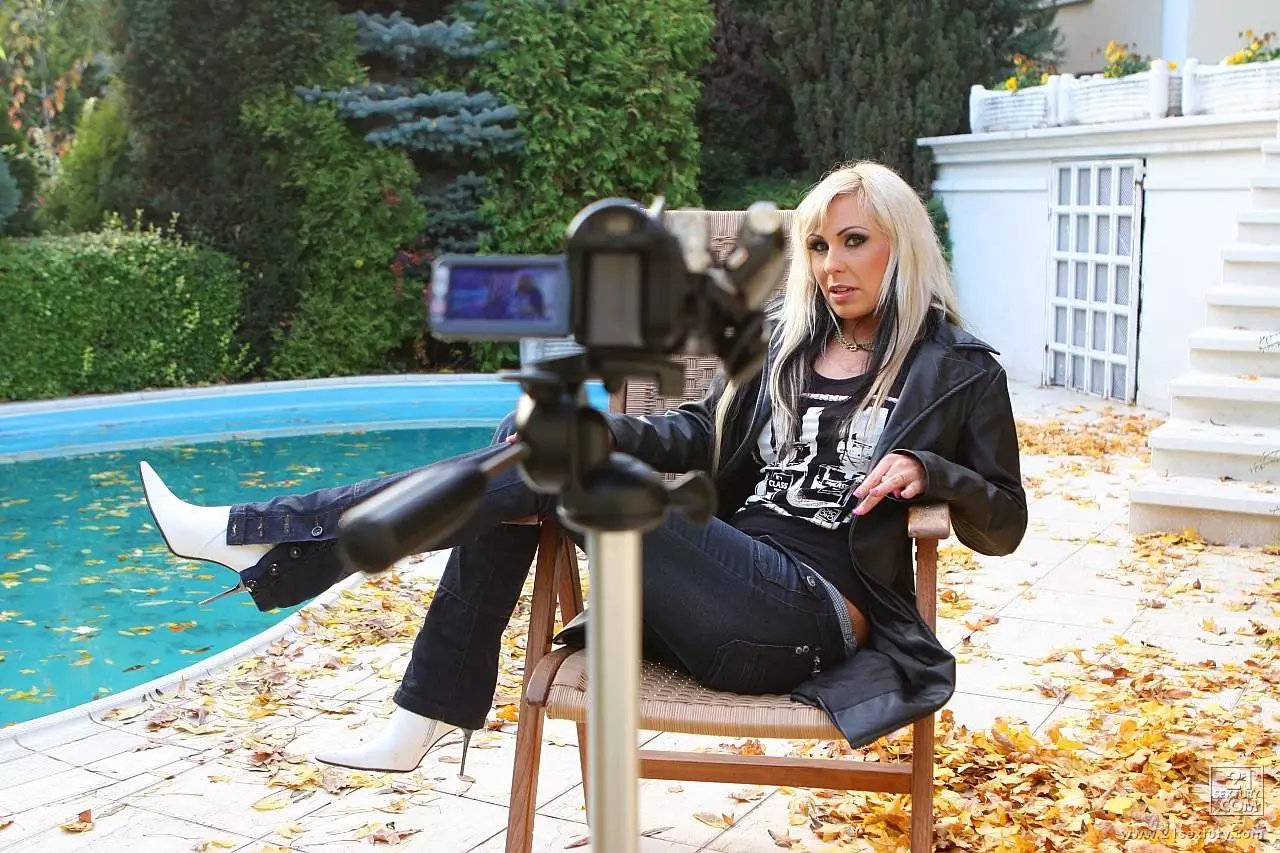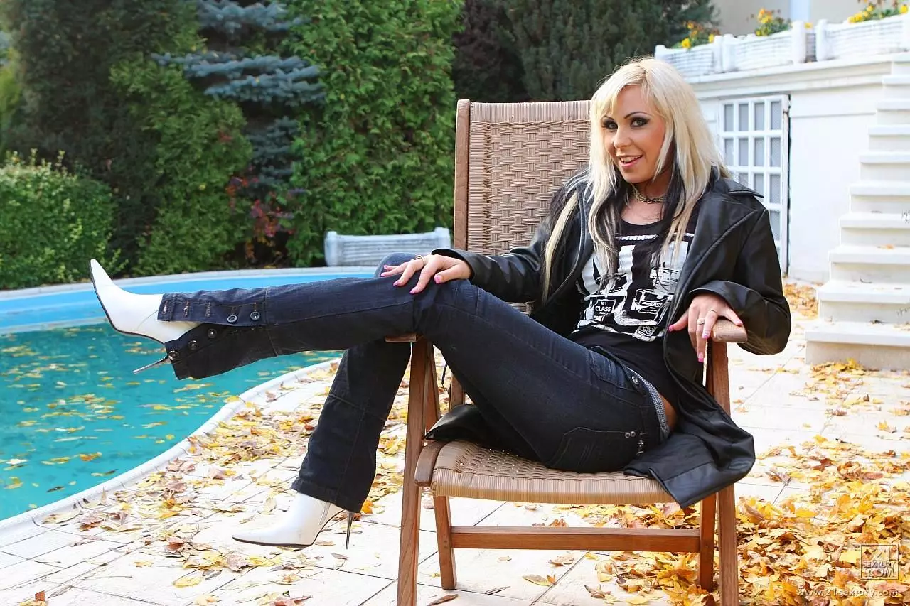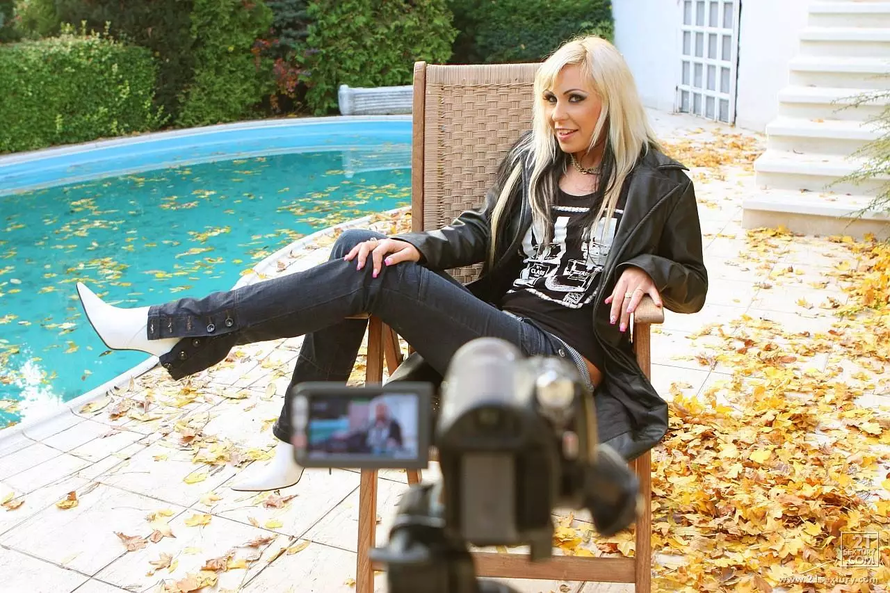Блондинка Adriana Russo задирает черную футболку и показывает прекрасные сиськи — Adriana Russo