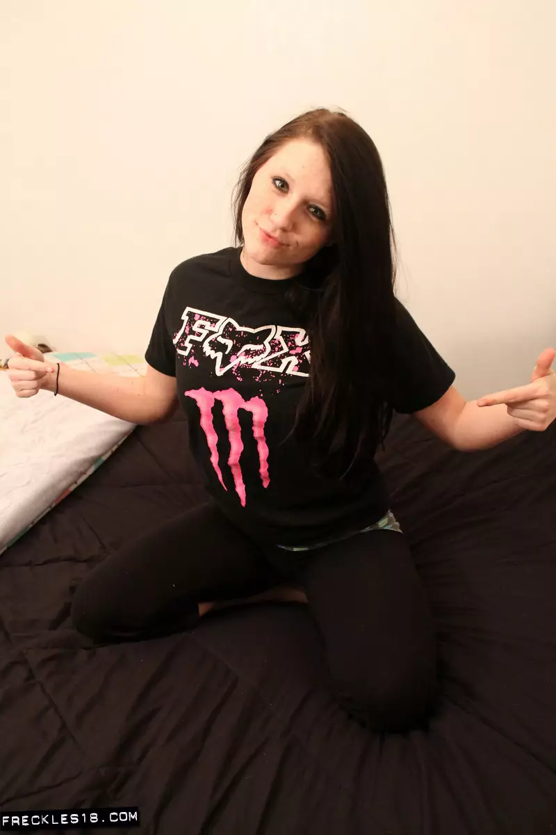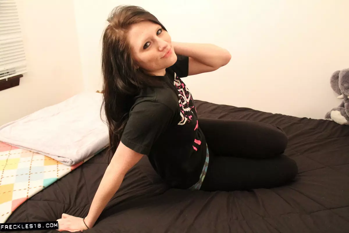 Игривая куколка Freckles раздевается, сдавливает свои большие дыни и трет киску через трусики — Freckles