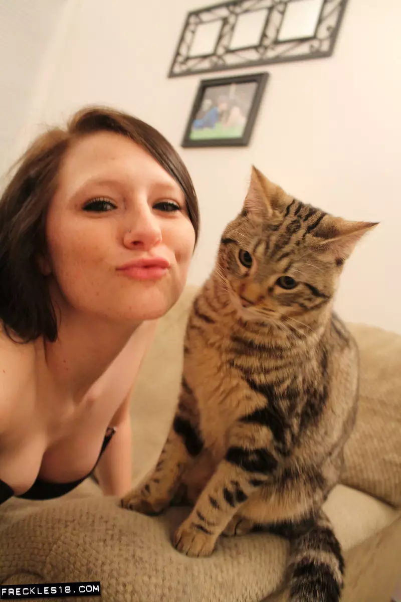 Брюнеточка Freckles раздвигает ножки и показывает свою сексуальную попку в черных трусиках — Freckles