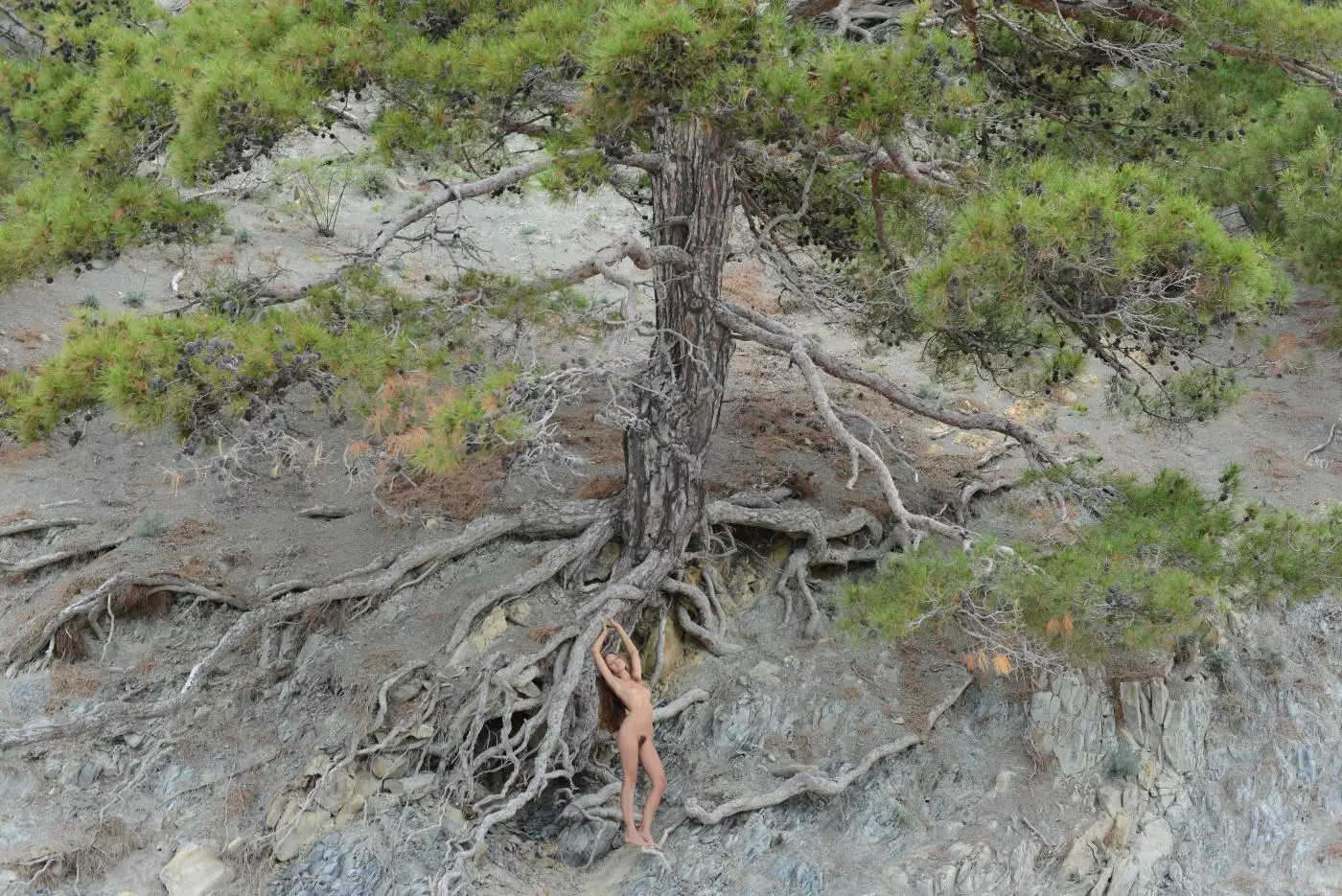 Шикарная малышка Geisha B стоит под открытым небом с голыми сиськами и волосатой киской — Geisha B