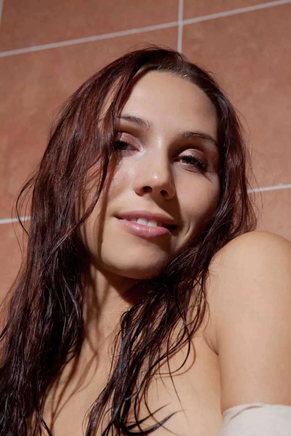 Брюнетка-подросток Gemma A дурачится в ванной - обнаженная, с горящей киской — Gemma A