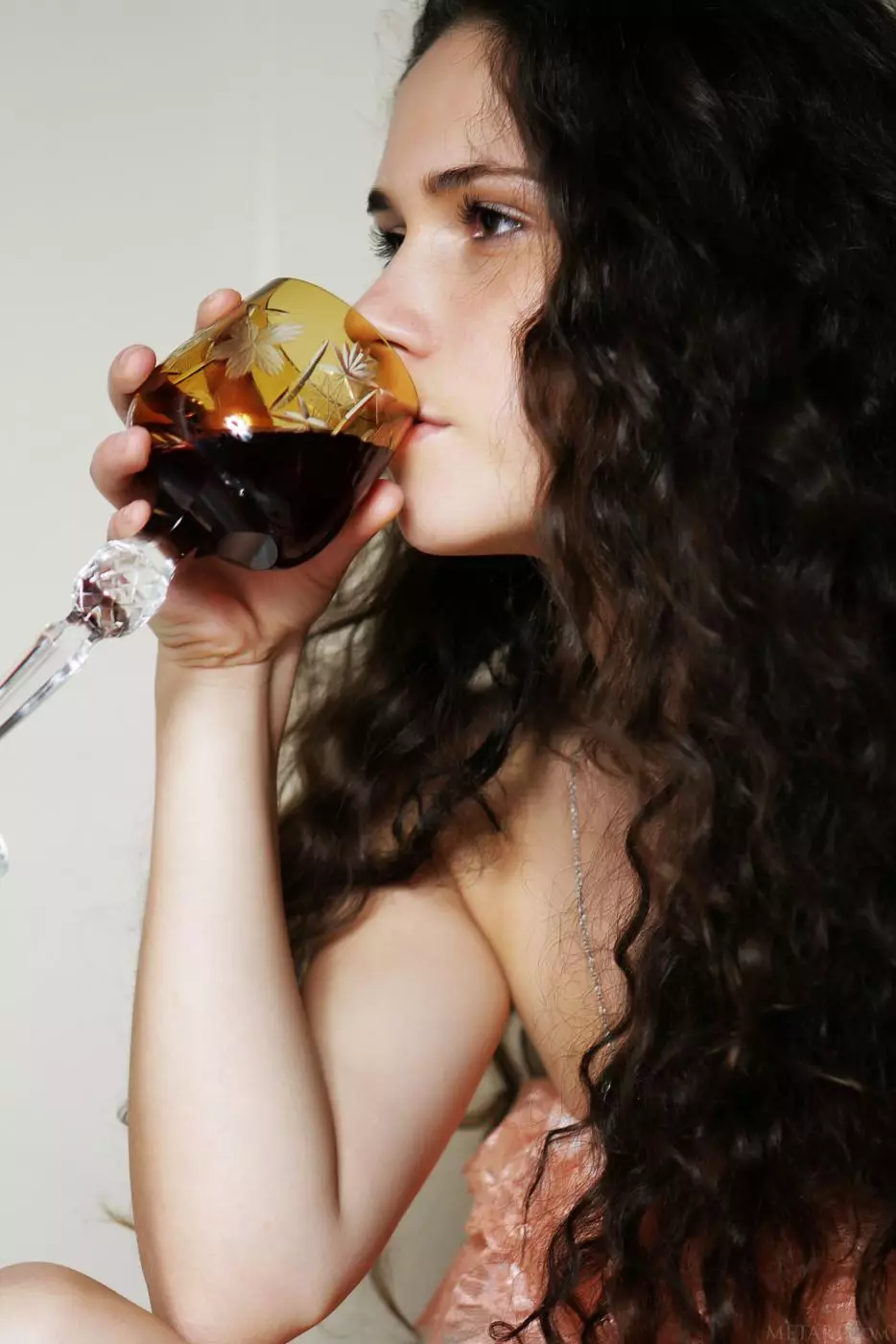 Милашка брюнетка подросток Ira J голой пьет вино в ванной в эту романтичную ночь — Ira J