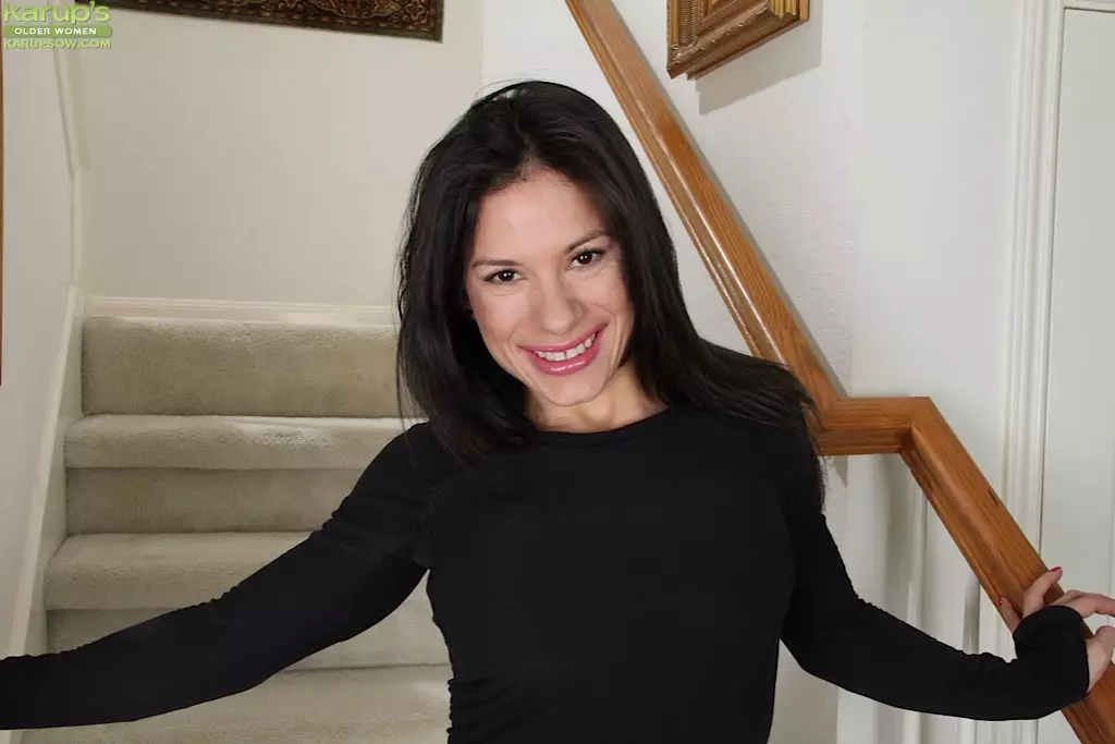 Грудастая зрелая латинская потаскуха - Isabella Rodriguez, избавляется от одежды и развратно позирует на лестнице — Isabella Rodriguez