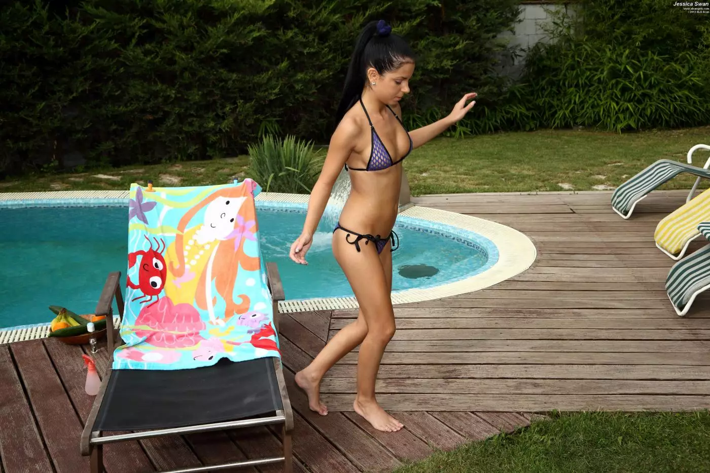 Сладкая брюнетка Jessyka Swan расслабляется возле бассейна, мастурбирует и трахается с бананом — Jessyka Swan