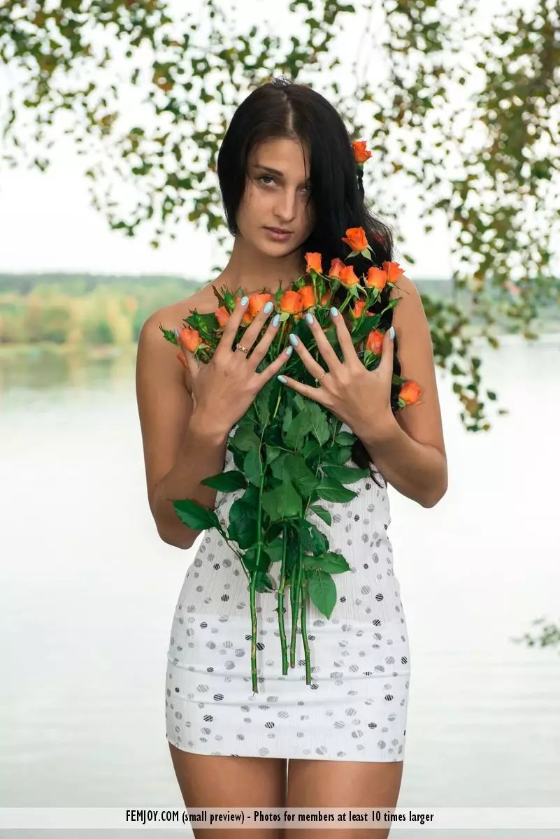 Озорная брюнетка Katya AC позирует с голой задницей и с букетом цветов — Katya AC