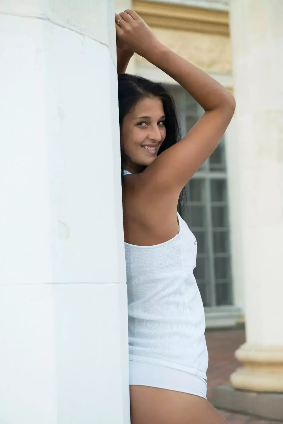 Роскошная брюнетка с карамельной кожей Katya AC снимает одежду на свежем воздухе — Katya AC