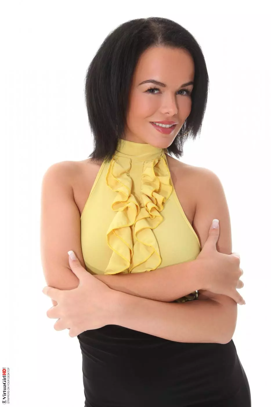 Игривая и грудастая брюнетка Linet Slag срывает одежду с возбужденного тела — Linet Slag