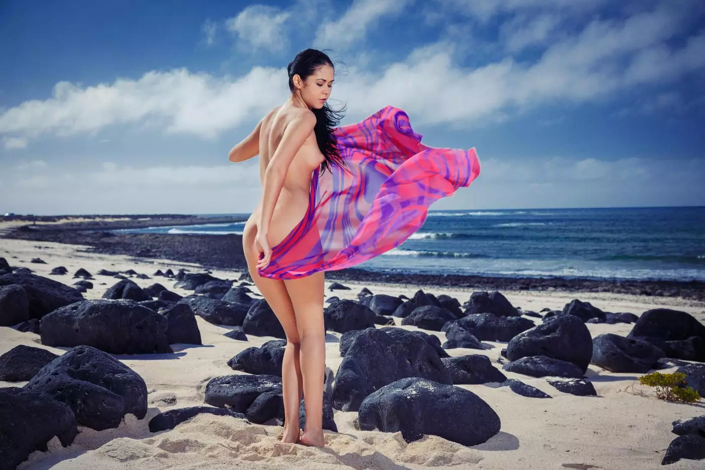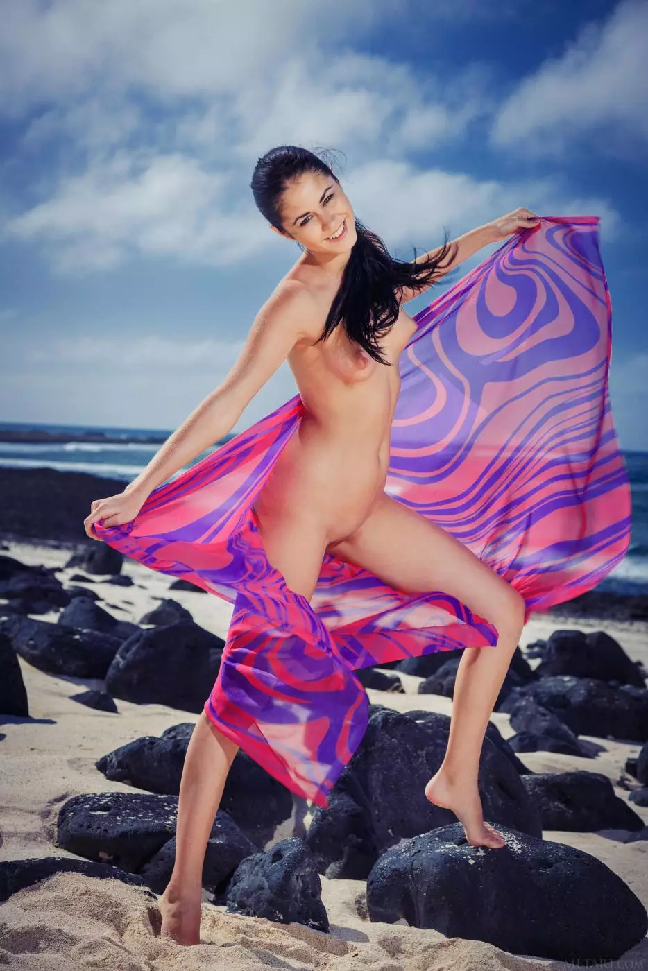 Брюнетка-подросток Macy B показывает свою бритую киску на пляже — Macy B