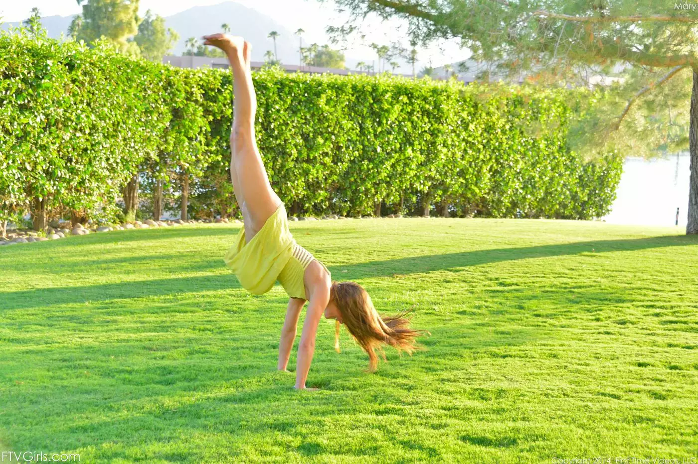 Блондинка Marry Lynn показывает гимнастические упражнения и свою киску — Marry Lynn