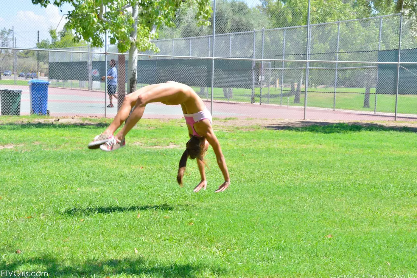Жаркая зарядка на улице с участием бойкой гимнастки Marry Lynn, показывающей, на что она способна и раздевающейся — Marry Lynn