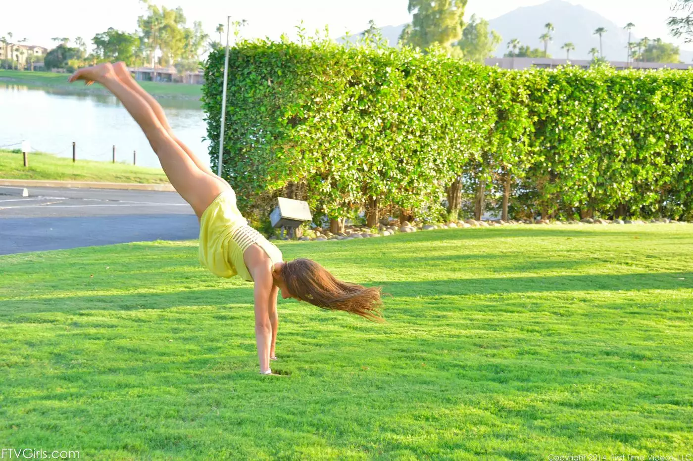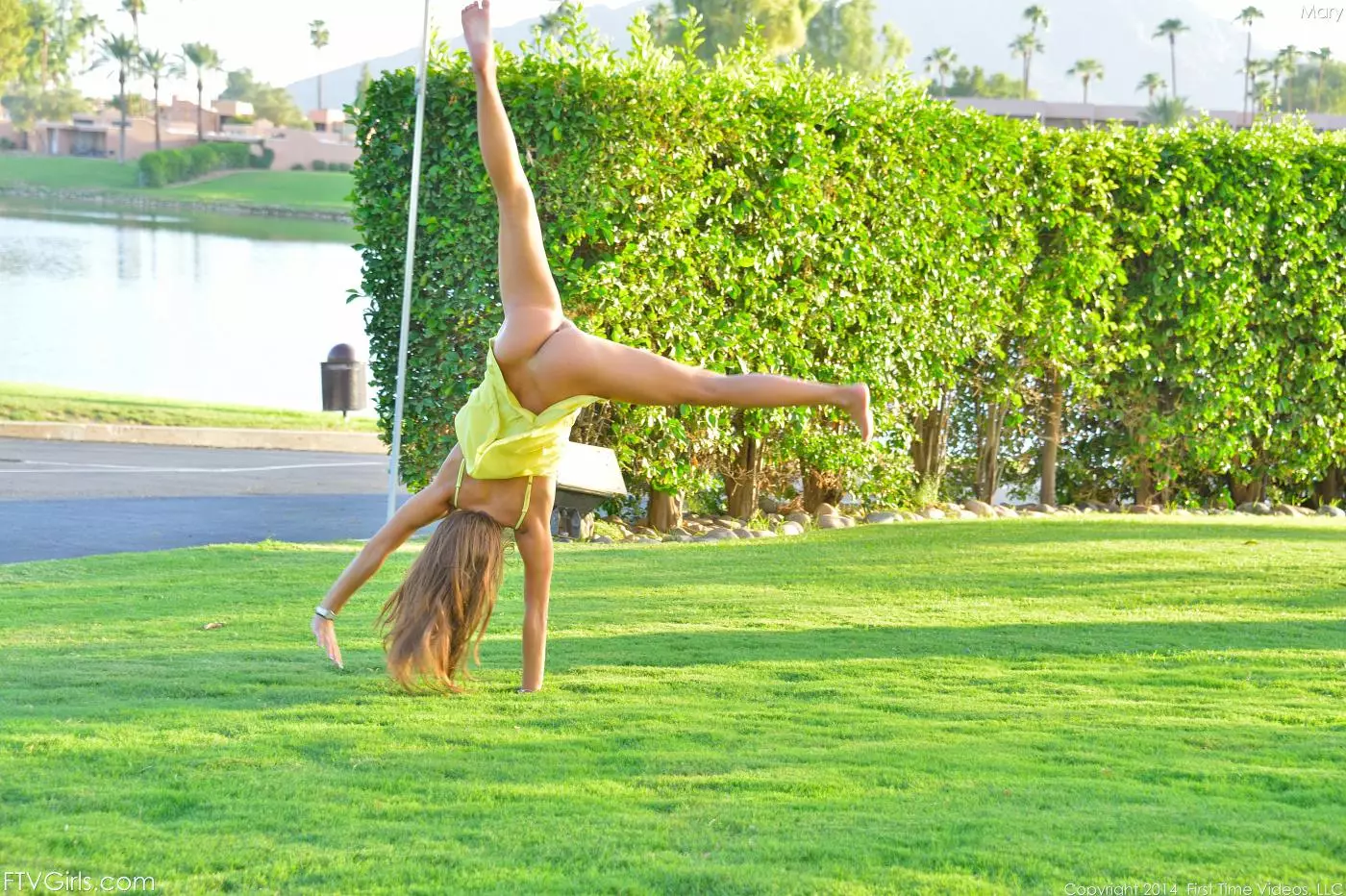 Распутная блондинка-гимнастка Marry Lynn показывает свои умения и вставляет себе в щелку фаллоимитатор у всех на виду — Marry Lynn