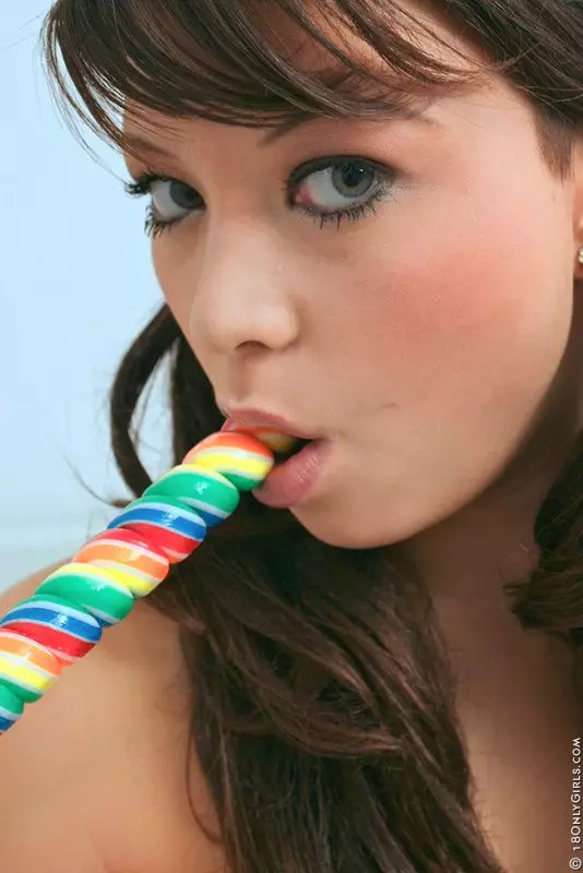 Развратная малышка Natalia Forrest позирует в чулках и сосет длинный леденец — Natalia Forrest