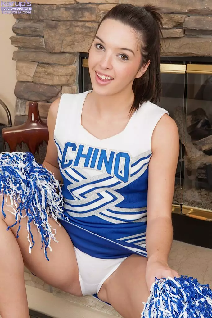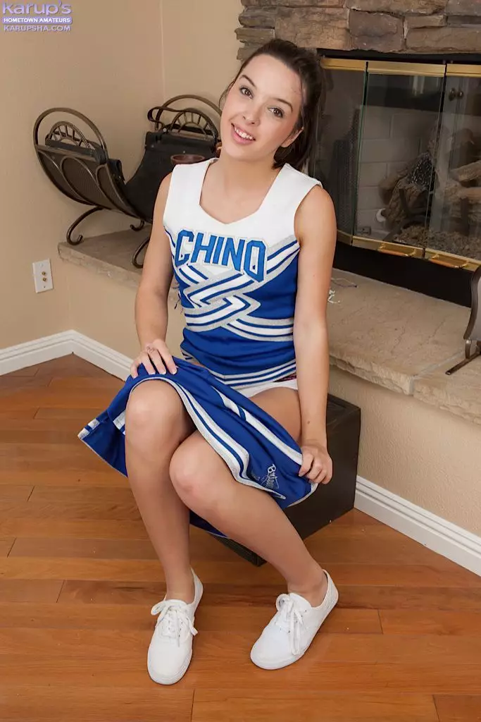 Молоденькая брюнетка с бритой киской Natalie Heart снимает свою чирлидерскую форму и мастурбирует — Natalie Heart