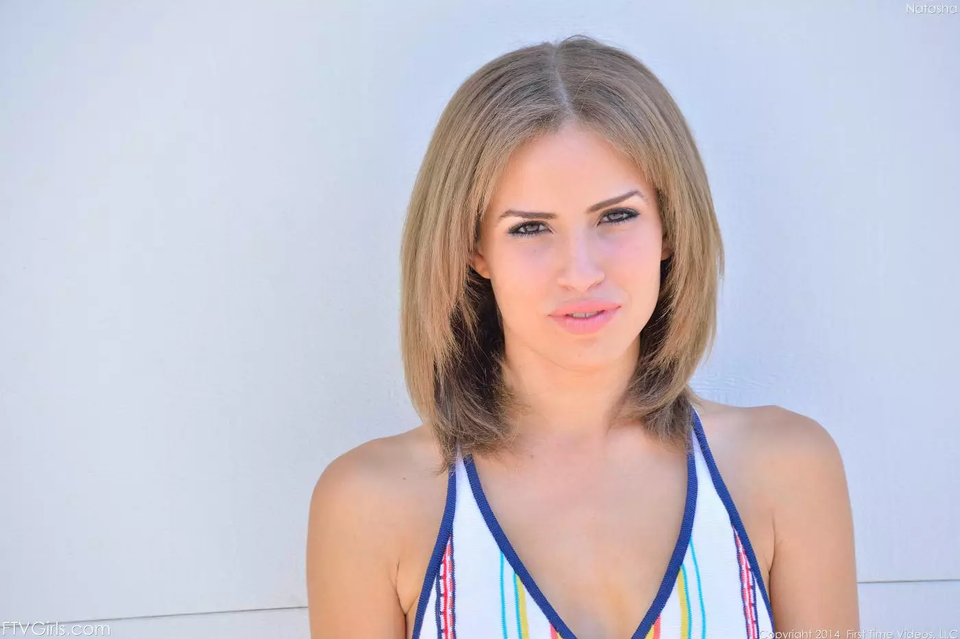 Латинка Natasha White сидит на земле и мастурбирует бритую киску под юбкой — Natasha White