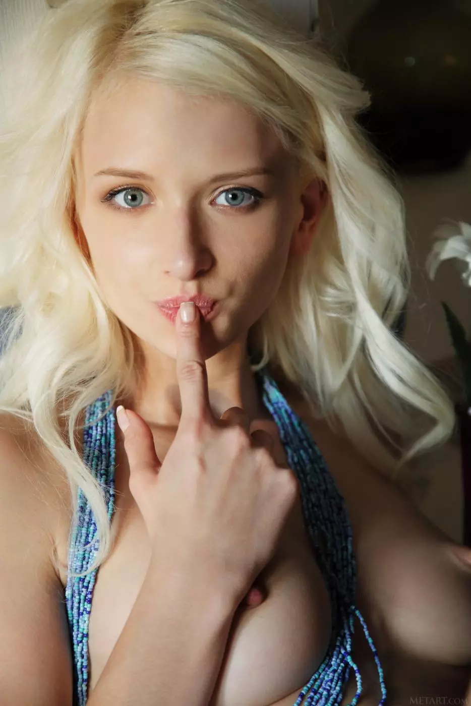 Блондинка Nika N показывает розовую щелку и делет ее мокрой — Nika N