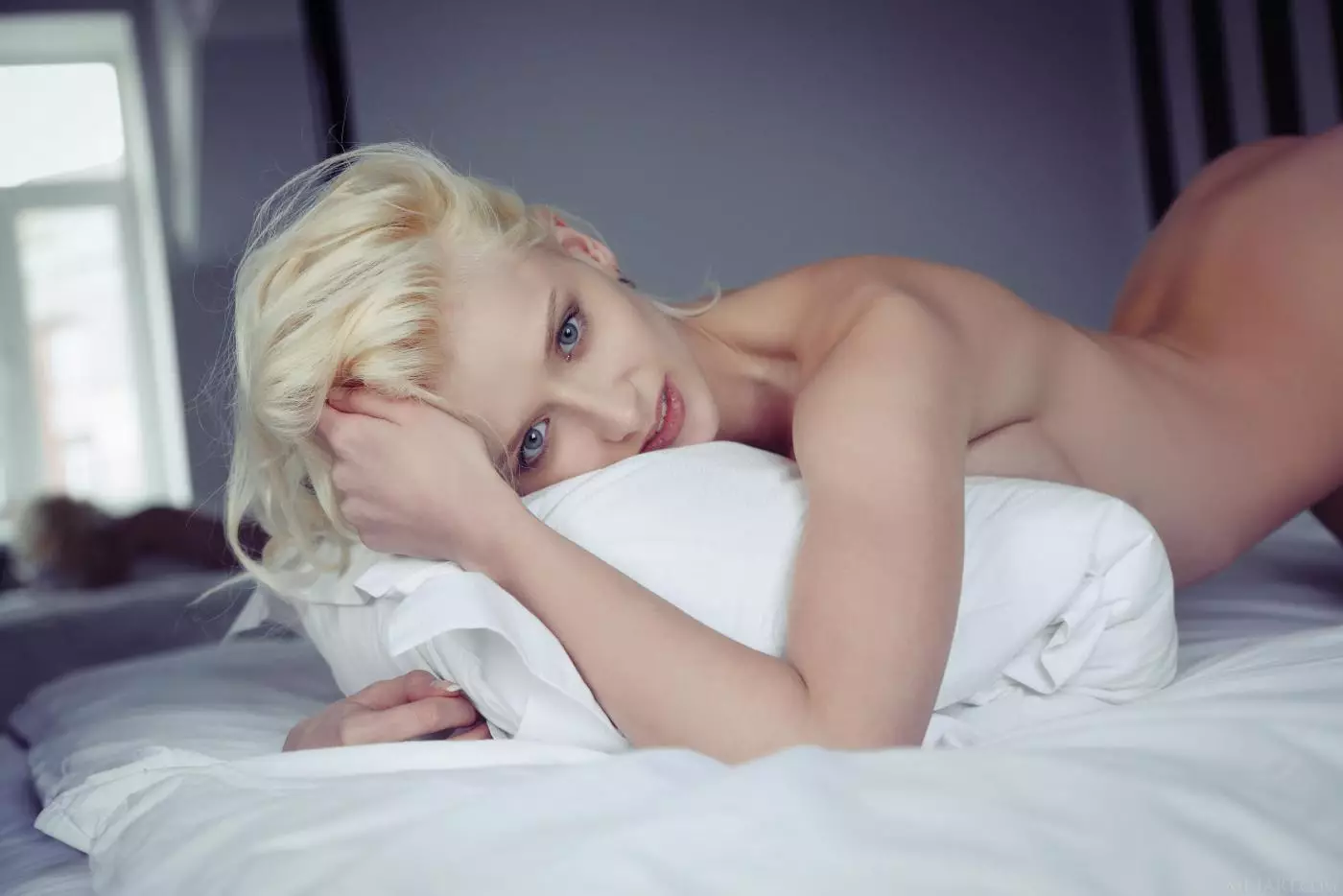 Худая блондинка Nika N показывает свою спелую киску — Nika N