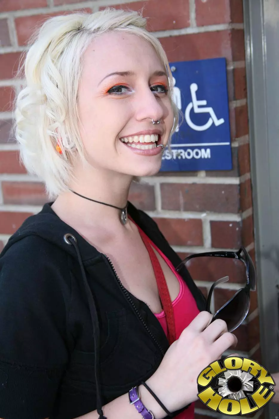 Красотка-блондинка Proxy Paige держит черный член в ручках, готовая его отсосать — Proxy Paige
