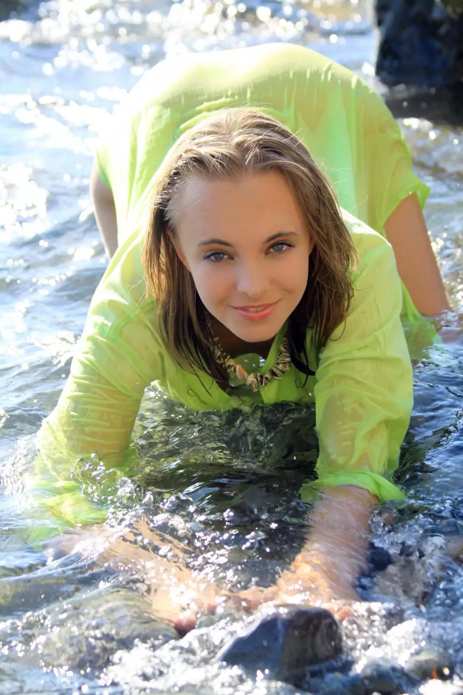 Элегантная блондинка Rachel Blau раздевается у океана — Rachel Blau