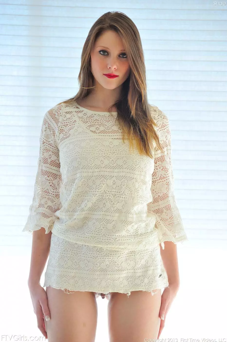 Игривая блондинка Shae Snow бесстыдно показывает свои маленькие титечки и киску как у подростка — Shae Snow