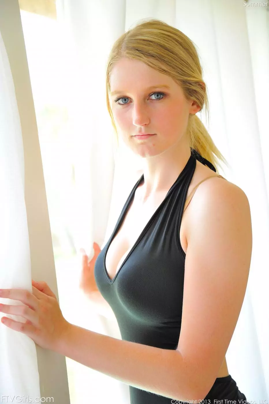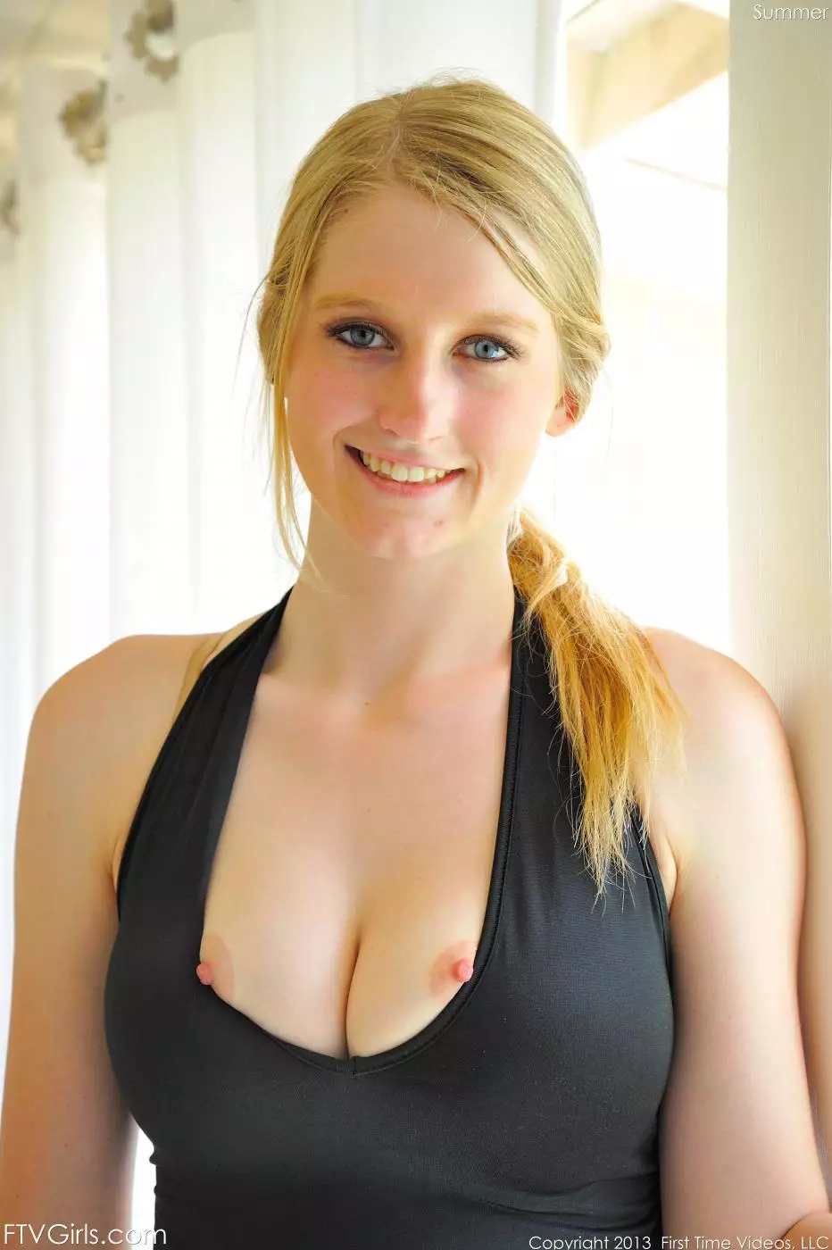 Сексуальная блондинка Summer FTV показывает твердые розовые сосочки и вставляет игрушку в киску — Summer FTV