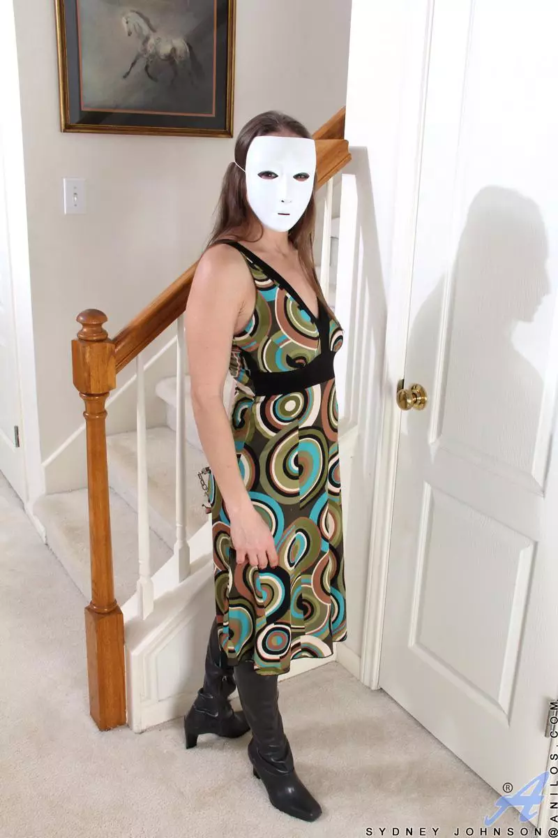 Негодная мамочка Sydney Johnson показывает голую грудь и киску, через дырку в чулочках — Sydney Johnson