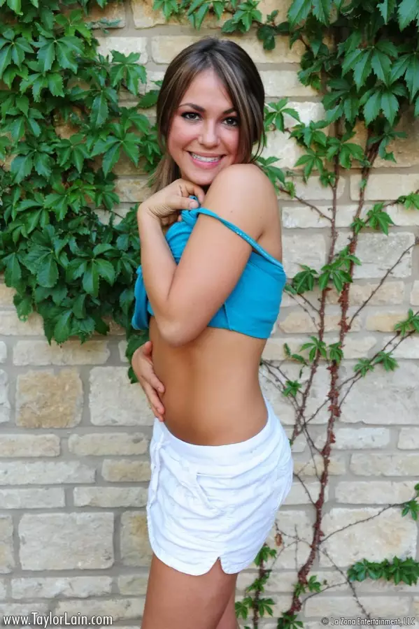 Милая брюнетка Taylor Lain снимает свою одежду в саду и показывает свою классную попку — Taylor Lain