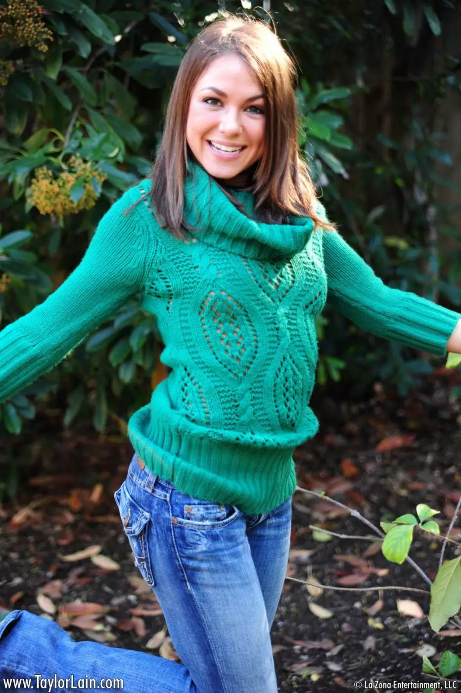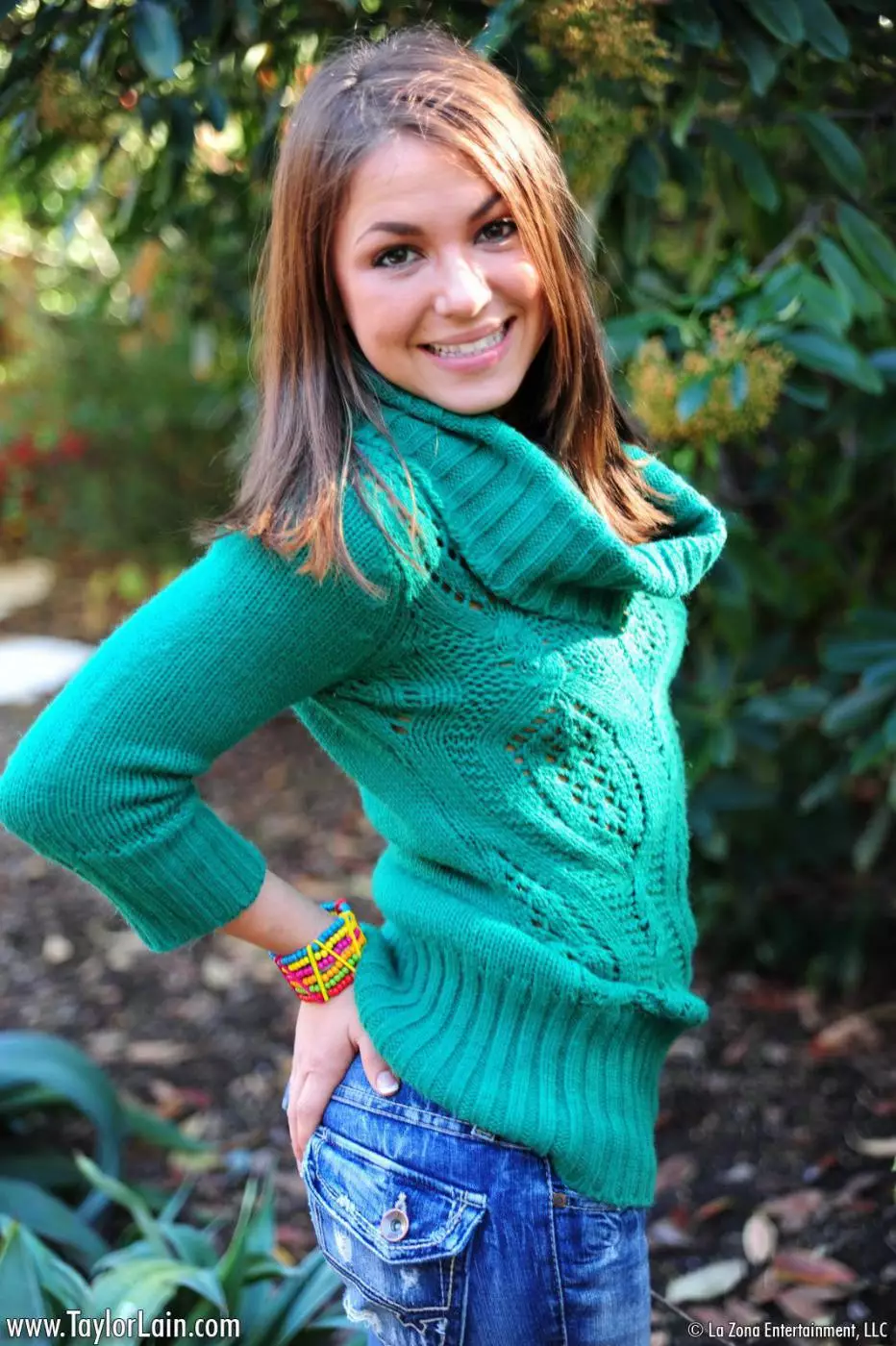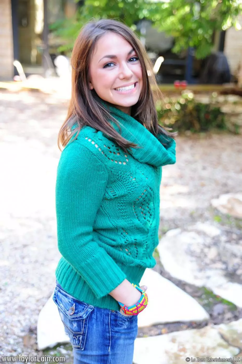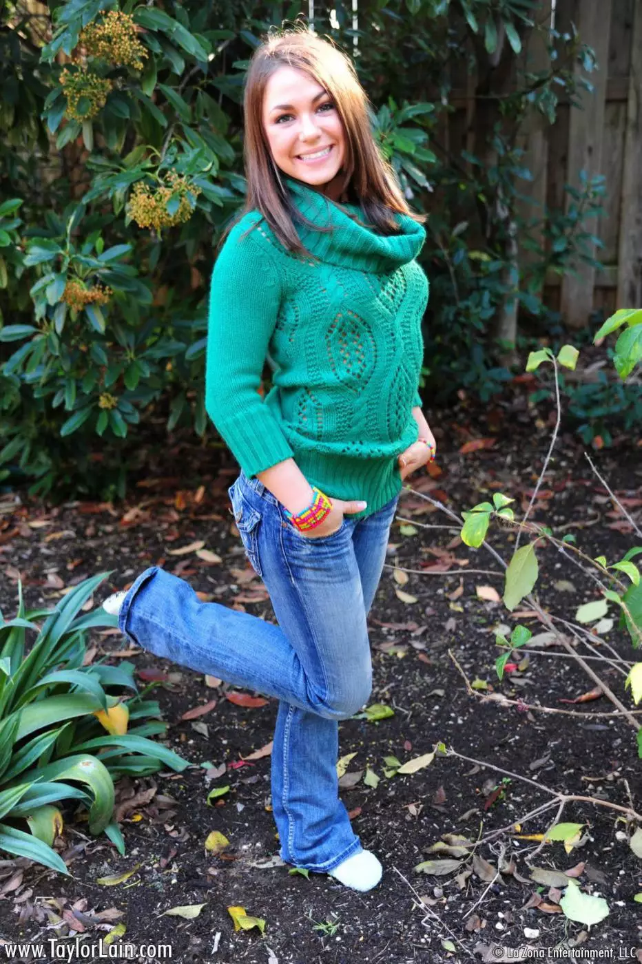 Милая брюнетка в узких джинсах Taylor Lain развлекается на природе — Taylor Lain