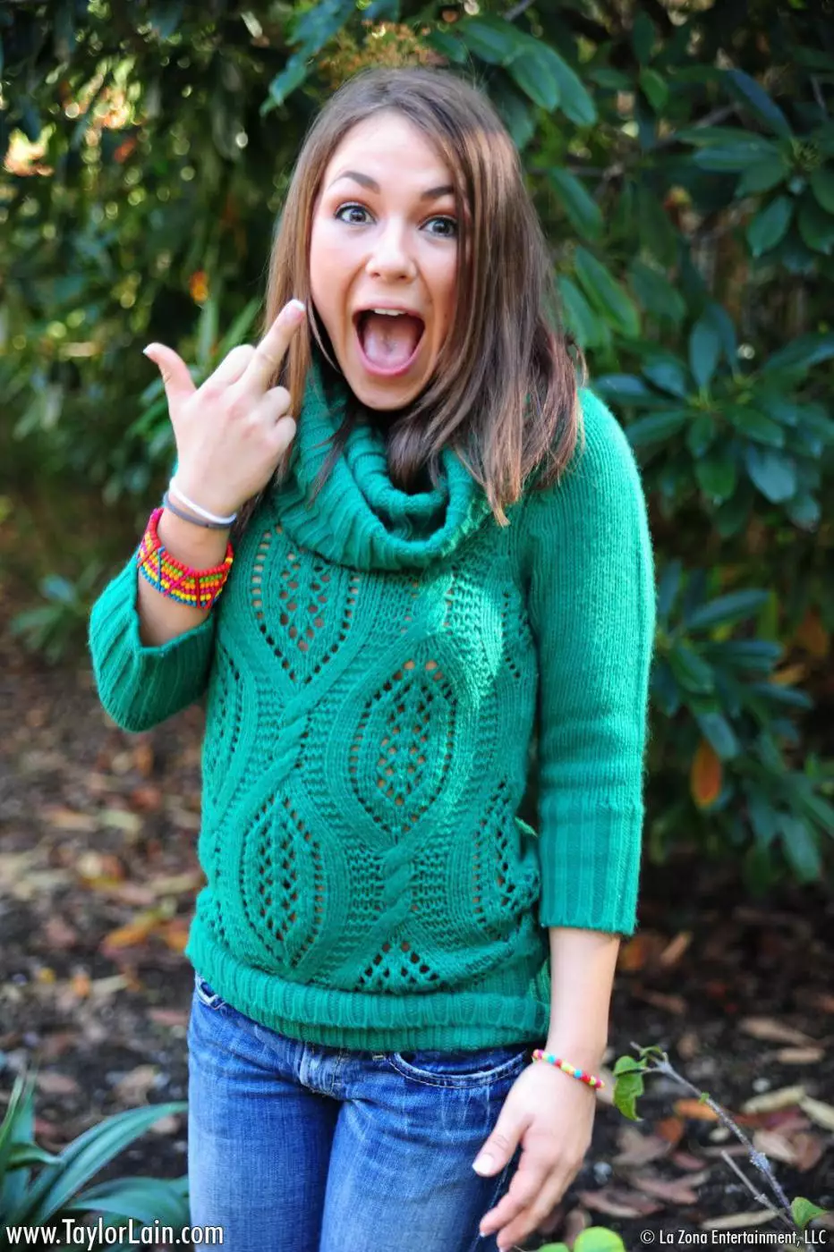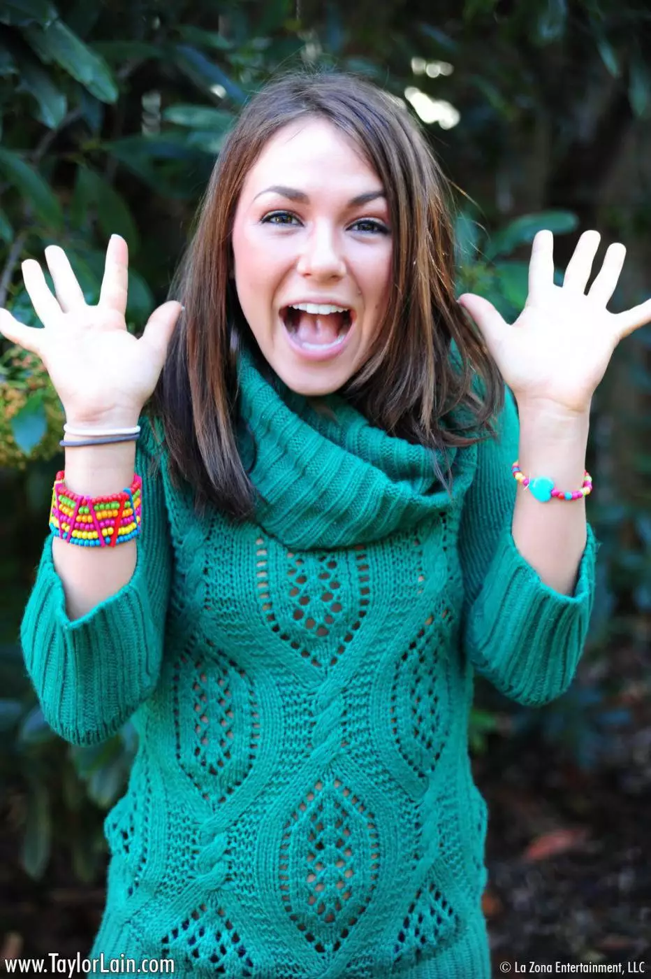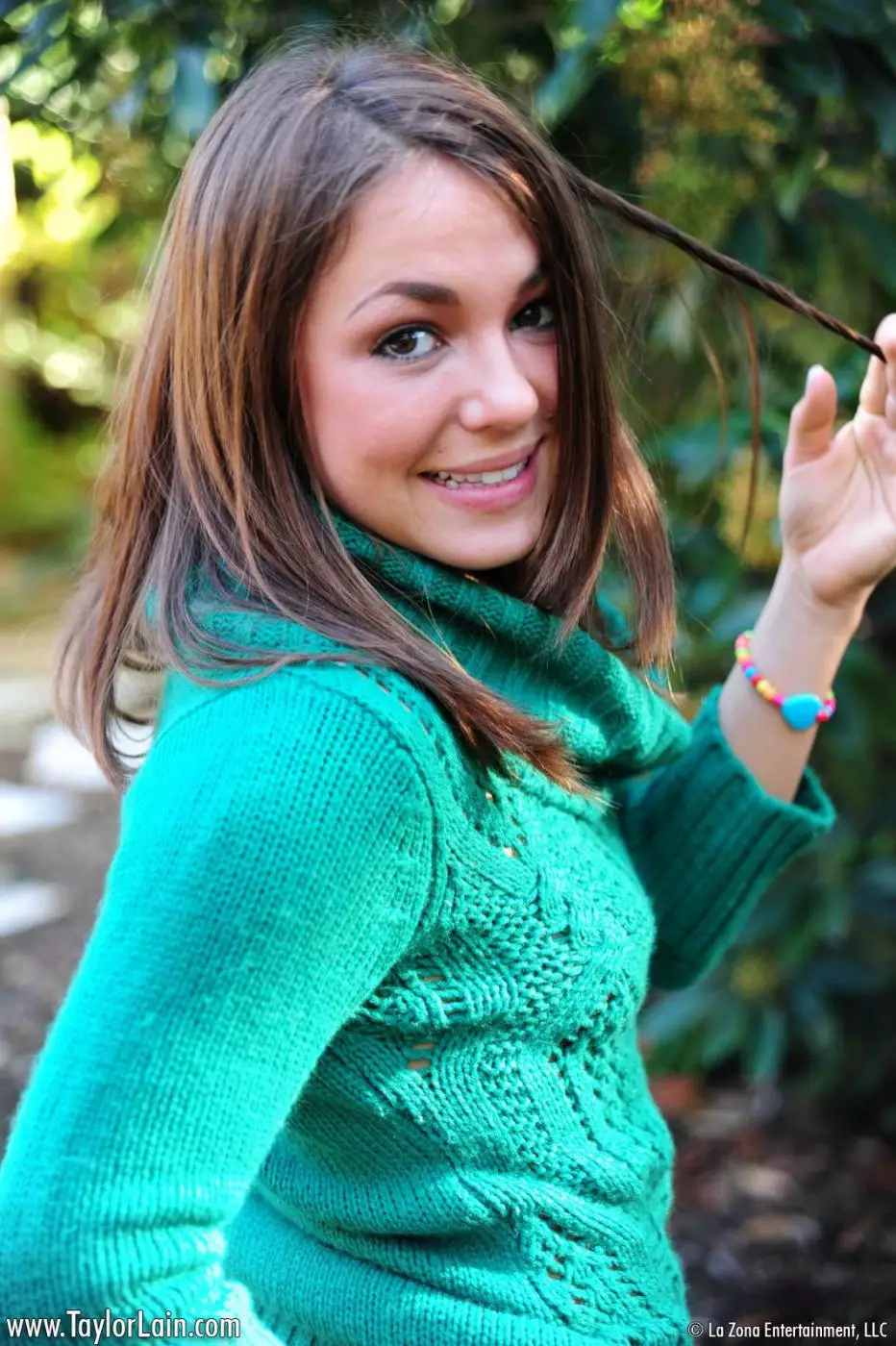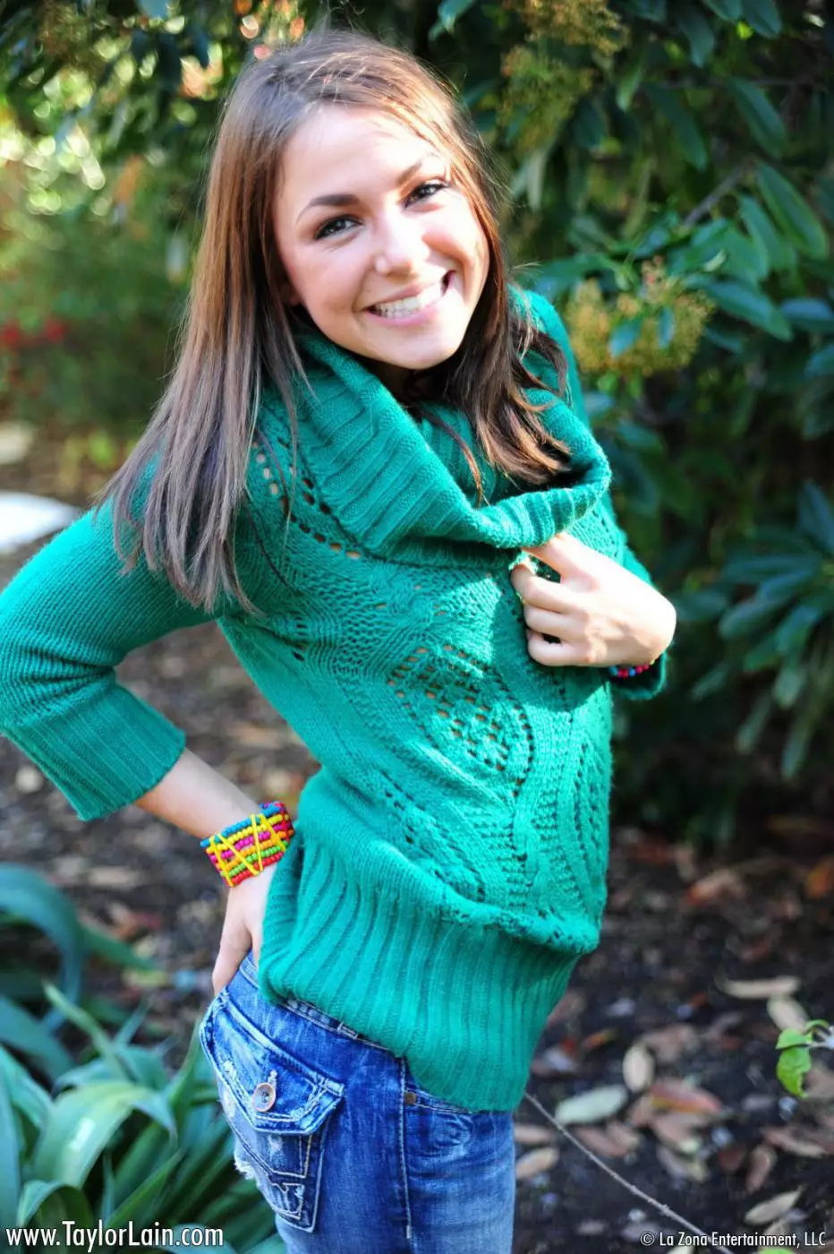 Милая брюнетка в узких джинсах Taylor Lain развлекается на природе — Taylor Lain
