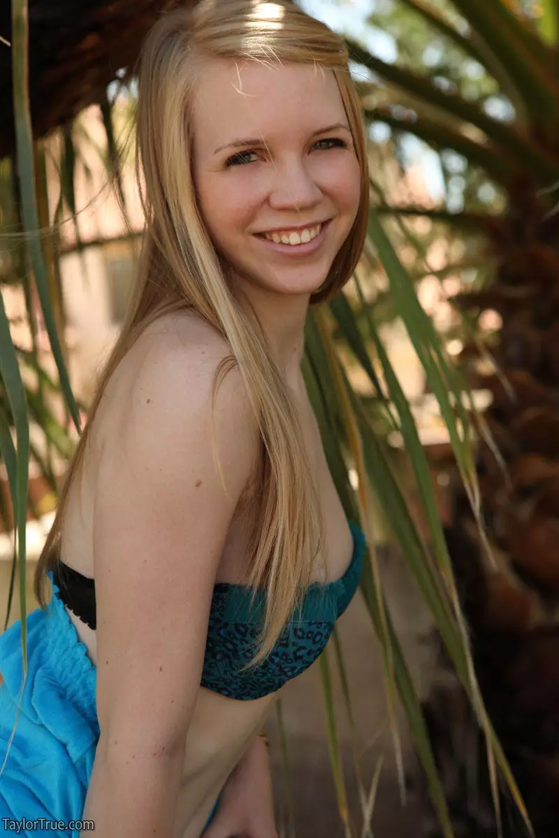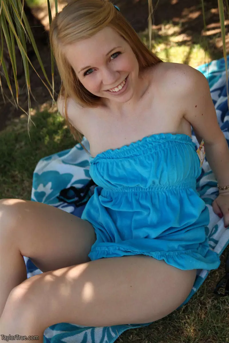 Милая блондинка Taylor True идет в парк и показывает свое белье на одеяле — Taylor True