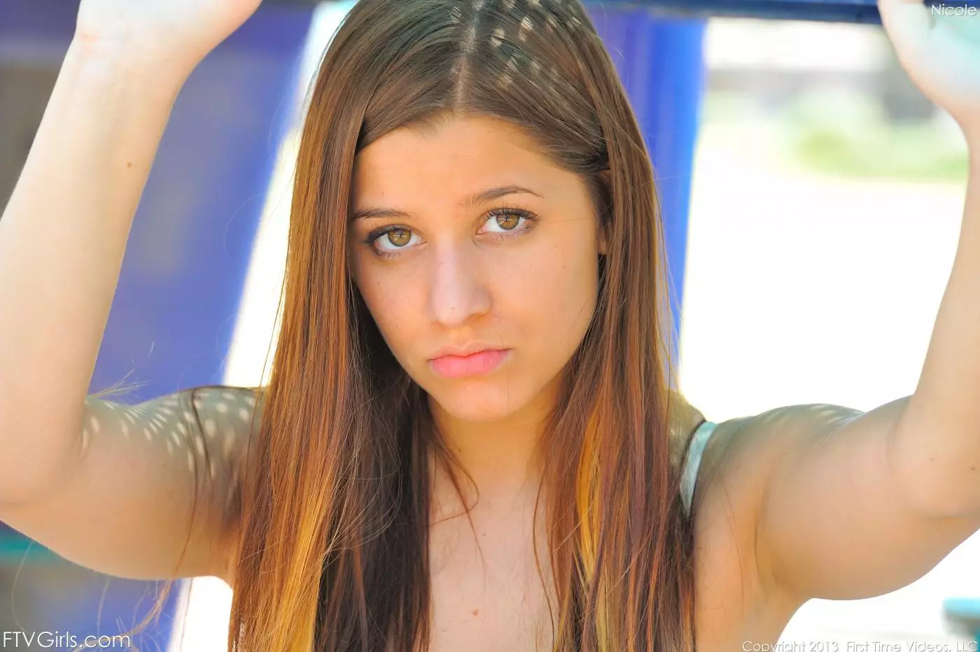 Извращенка-брюнетка Teddi Rae показывает голую грудь и киску под юбкой, на свежем воздухе — Teddi Rae
