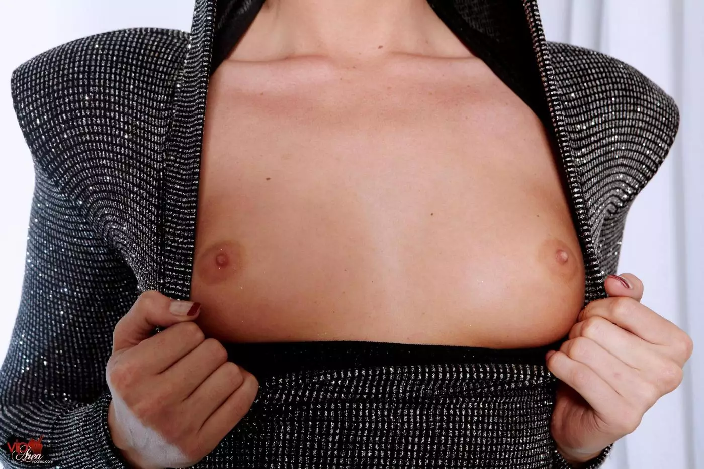 Сексуальная брюнетка в обтягивающем платье Tori Black показывает свою грудь и шелковую киску — Tori Black