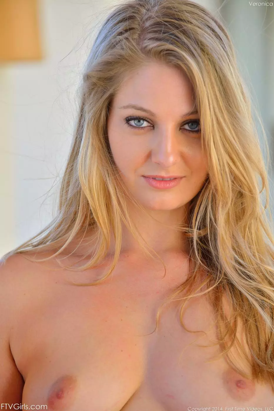 Очаровательная белокурая малышка Veronica Weston сначала оголяет сиськи и киску без трусиков, а потом снимает платье — Veronica Weston