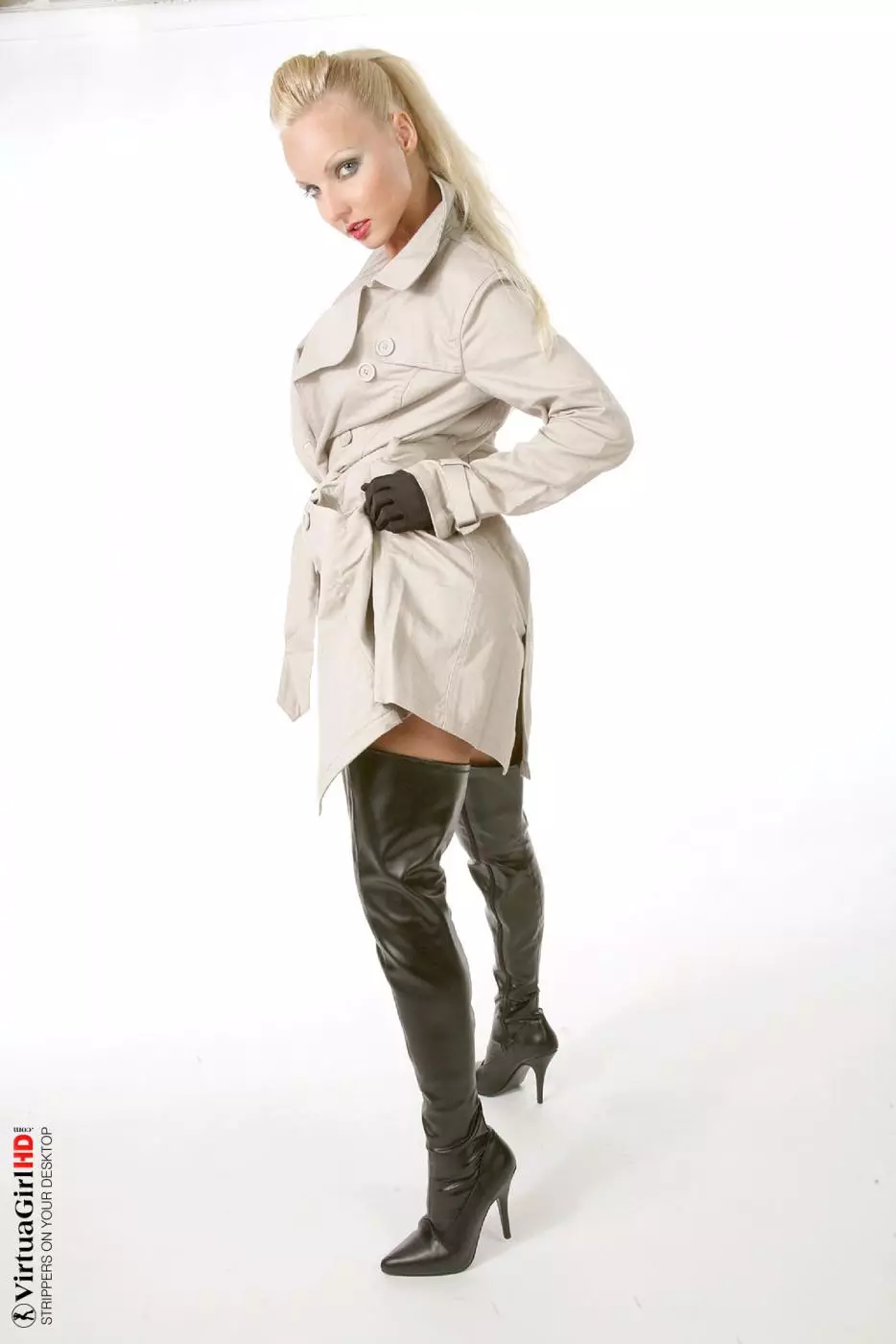 Грудастая блондинка Veronika Symon расстегивает плащ и показывает эротичное белье — Veronika Symon