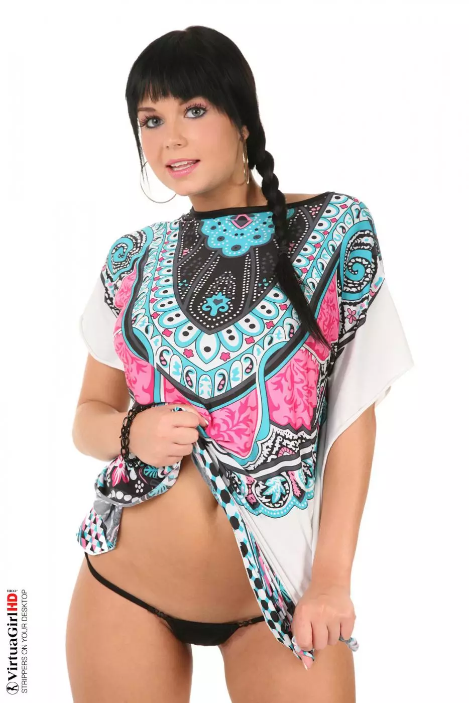 Молоденькая брюнетка Victoria Blaze обнажает сексуальные сиськи и показывает киску — Victoria Blaze