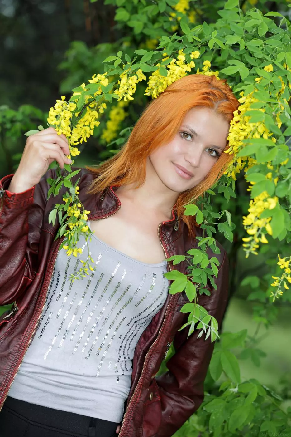 Рыжая милашка Violla A раздевается и позирует на цветочном поле — Violla A