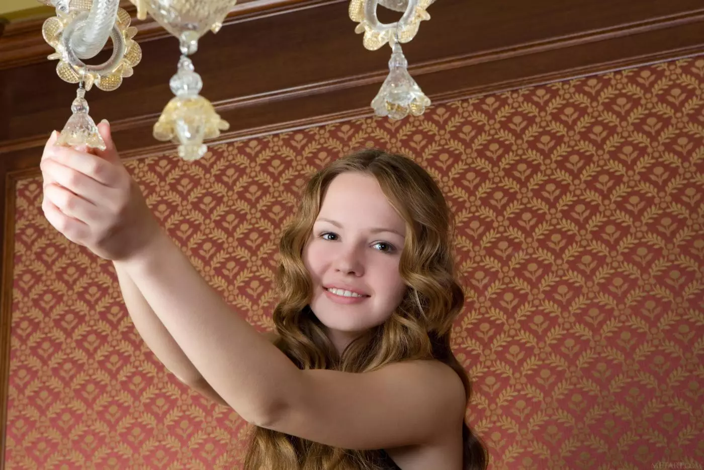 Кудрявая куколка Virginia Sun снимает корсет и трусики, сексуально позируя — Virginia Sun