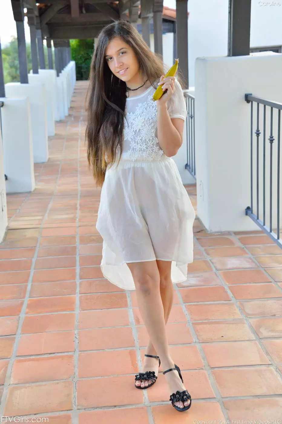 Латина-извращенка Caroline Ray ласкает бананом свою волосатую киску — Caroline Ray