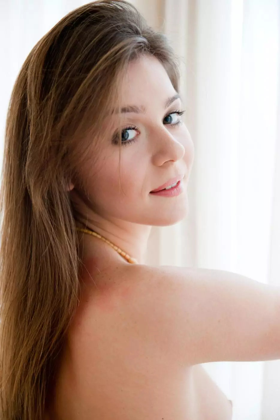 Длинноволосая милашка Lily C показывает очаровательную улыбку своей пизденки — Lily C