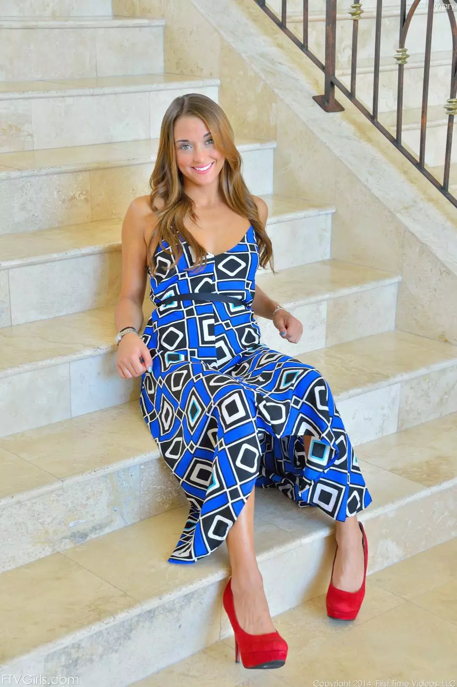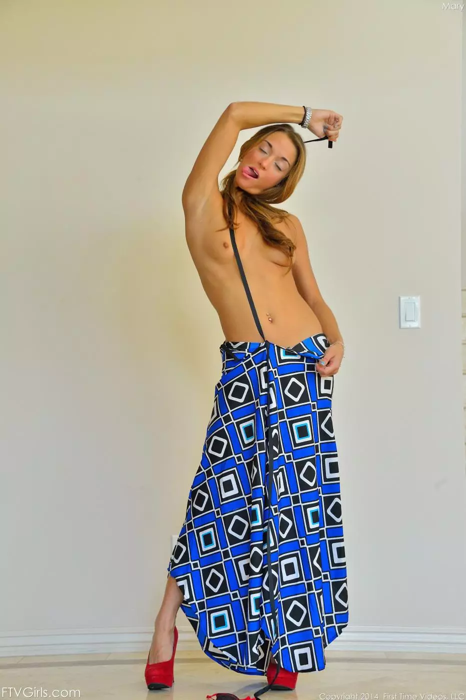 Аппетитная молоденькая девушка Marry Lynn снимает свое платье и позирует на улице — Marry Lynn