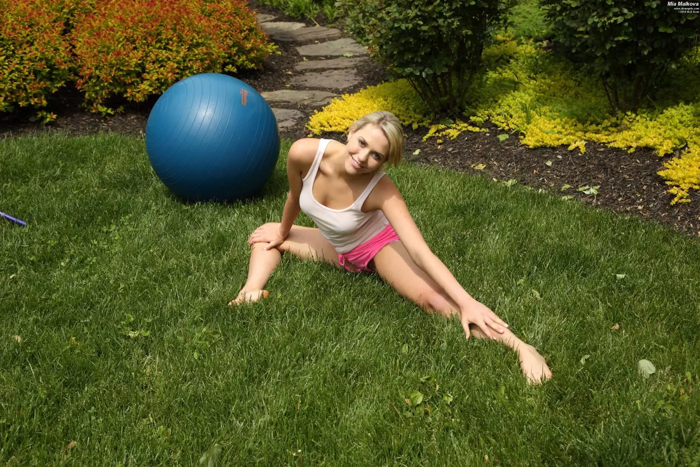 Грязная блондинка Mia Malkova раздевается и долбит свою киску игрушкой на мяче для фитнесса — Mia Malkova