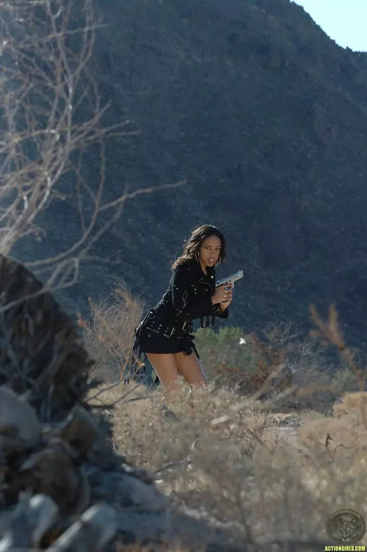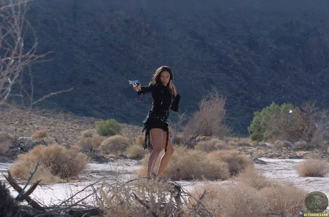 Сексуальная негритянка с оружием Amber Fox показывает свою сексуальную упругую попку на природе — Amber Fox