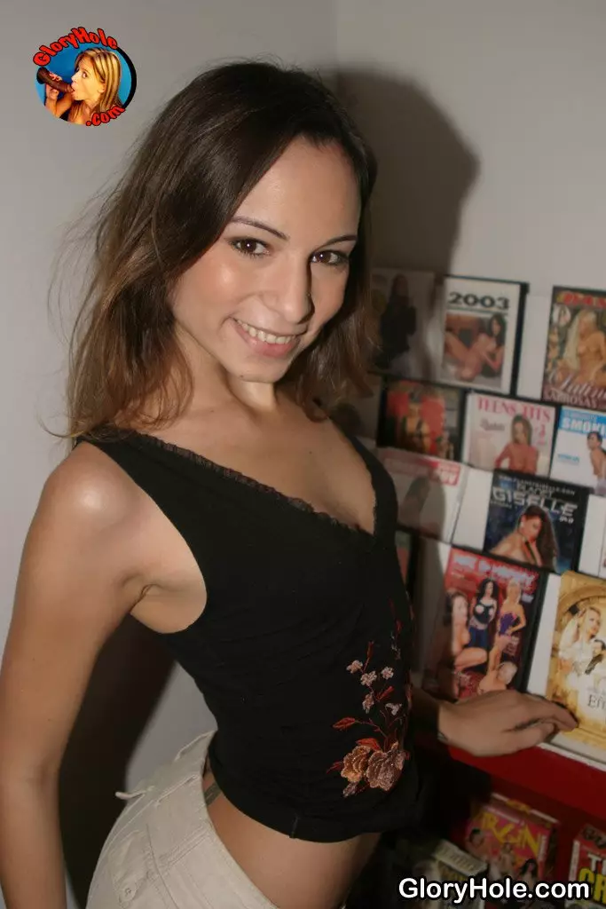 Мелкогрудая брюнетка Amber Rayne облизывает сперму после отсоса черного хуя в стене — Amber Rayne