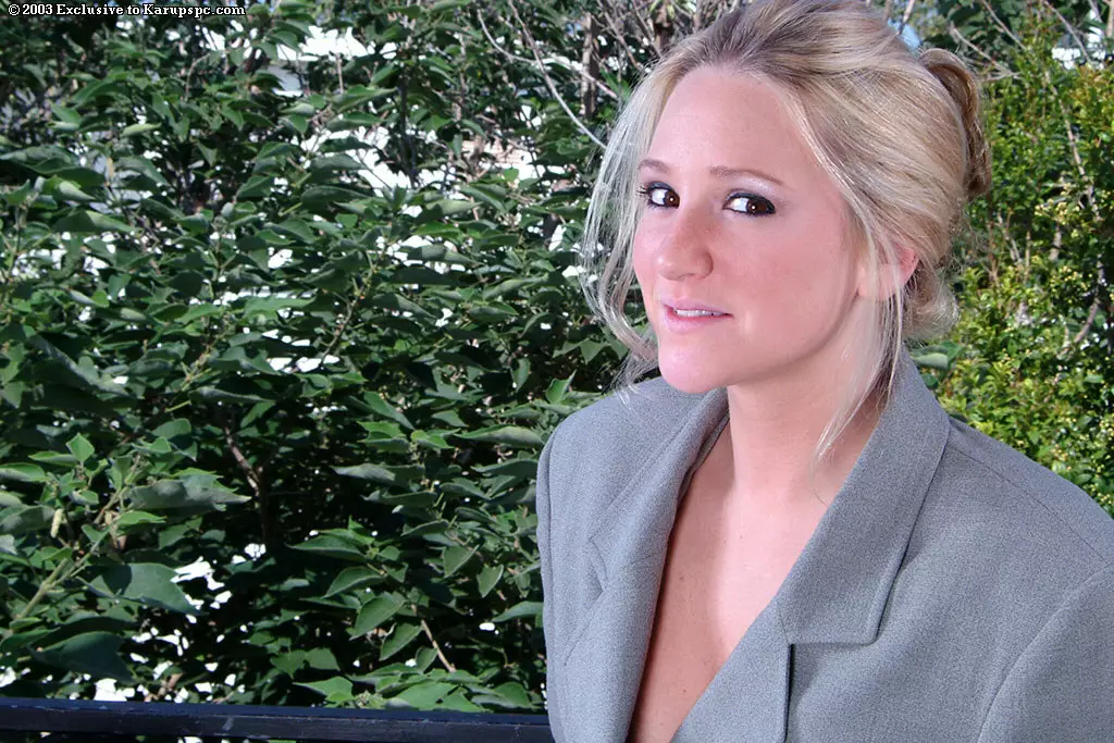 Блондинка Alexis Malone в очках и аккуратном офисном костюме дает рассмотреть поближе свой клитор — Alexis Malone