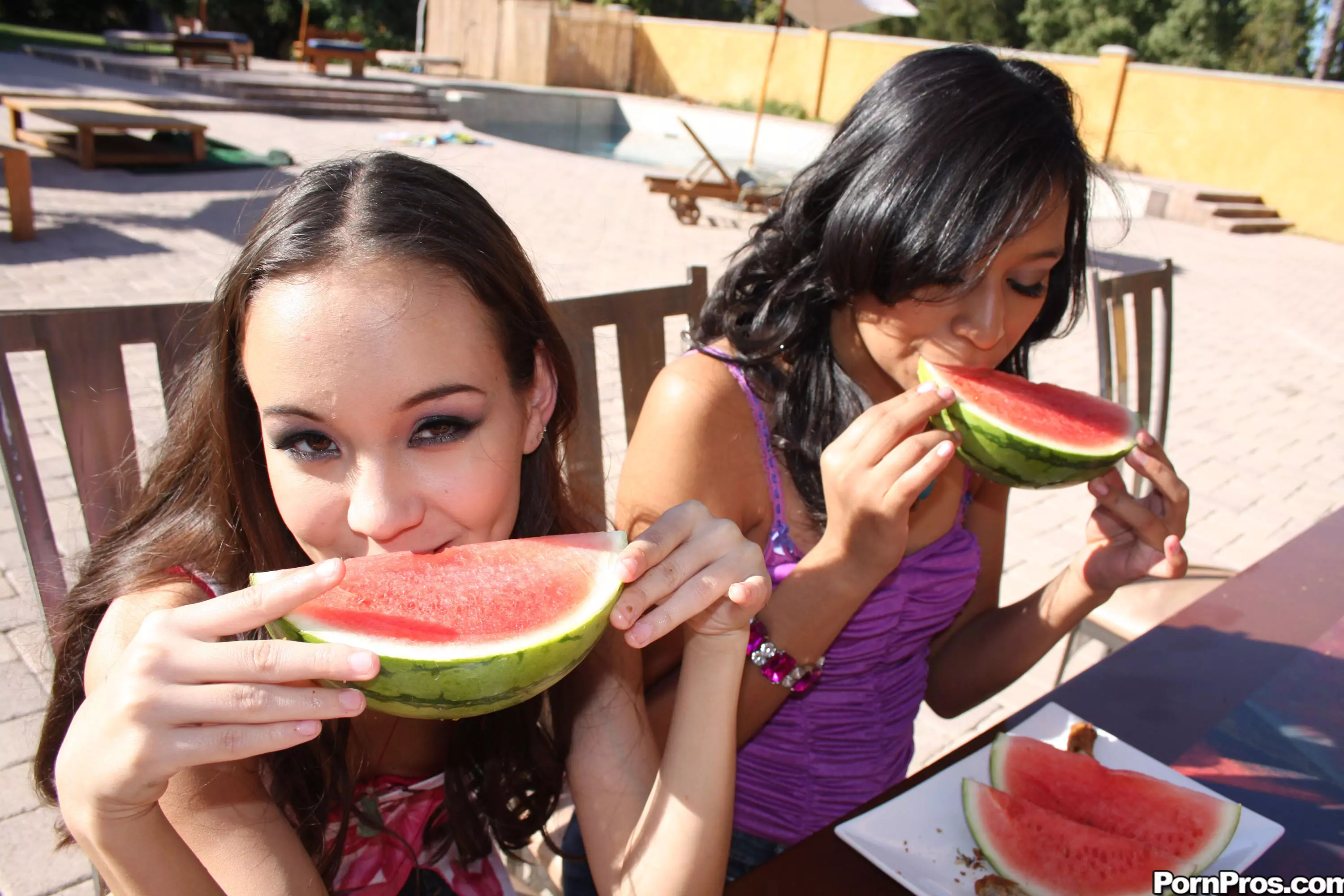 Amai Liu с подружкой подставляют дырочки навстречу большому члену и и ловят мощные струи спермы — Amai Liu